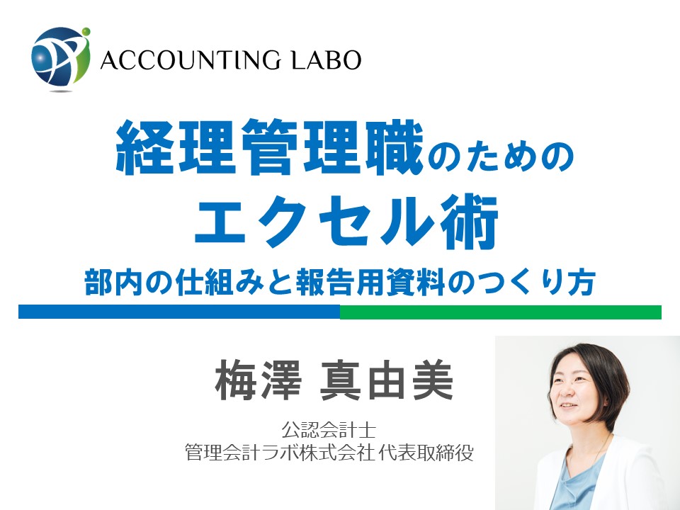 「元企業内会計士が教える 経理のためのエクセル基本作法と活用戦略がわかる本(税務研究会出版局)」の著者でもお馴染みの実務家会計士梅澤真由美が教える「経理のためのエクセル基本操作と活用方法がわかる講座」です。