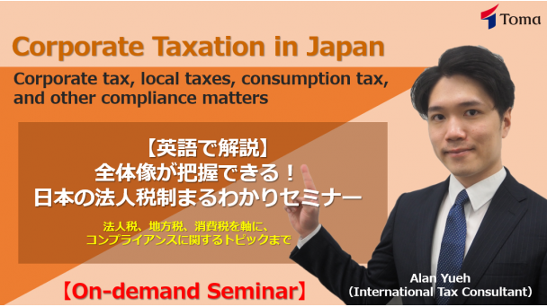 This online seminar aims to give you a comprehensive overview of the Japanese corporate tax system, covering the various tax types, calculation and filing procedures, and other regulatory requirements.