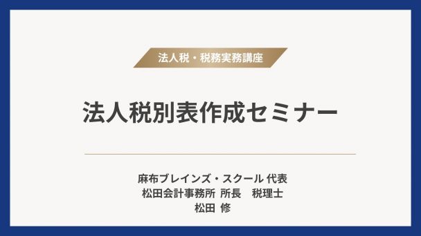 法人税申告の現場で「会計ソフト任せ」から脱却し、自分の力で申告書を作成・理解できる実践型セミナーです。経験豊富な講師が、別表四・五を中心に主要別表を最新様式で解説。演習を通じ、数字の流れが理解でき、申告実務に自信が持てるようになります。