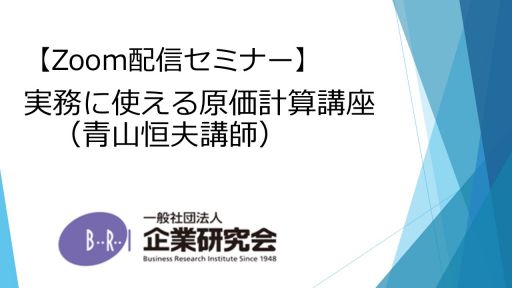 実務に使える原価計算講座 ~原価計算の基礎から応用まで平易に解説~(青山恒夫講師)