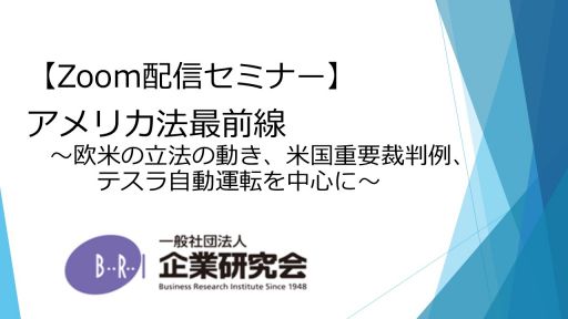 アメリカ法最前線 ~欧米の立法の動き、米国重要裁判例、テスラ自動運転を中心に~