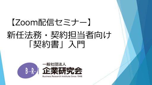 新任法務/契約担当者向け『英文契約書』入門 ~英文契約書の基礎知識から重要表現、一般条項、交渉におけるポイントを短時間で押さえる~