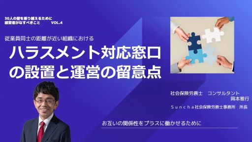 従業員同士の距離が近い組織における ハラスメント対応窓口の設置と運営の留意点 ~お互いの関係性をプラスに働かせるために~ 30人の壁を乗り越えるために経営者がなすべきこと vol.4
