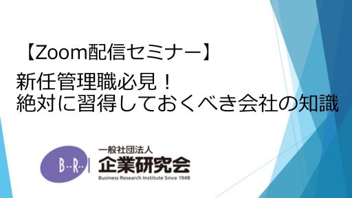 【開催にあたって】 管理職として仕事をしていくためには様々な知識やスキルが求められます。自分の部署だけではなく、会社全体の事業戦略等を理解したうえで業務を遂行することが求められますが、そのためにはまず会社のことを知らなくてはいけません。 そこで、本セミナーでは会社のルールや手続きなどを定める会社法の基礎知識、株主に最大限の利益を還元すべく経営を監視し不祥事を防ぐためのコーポレートガバナンス、自社の経営成績、財政状況等を把握するために必要な会計や経営分析の基本についてワークを交えながら解説します。