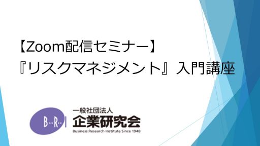【開催にあたって】 リスクマネジメント担当部門の新任担当者にとって、会社のリスクマネジメントに関する広範な基本知識を知ることは非常に重要です。そして自社のリスクを多面的に捉え分析することで、リスクを未然に防ぐことが求められています。 本セミナーでは、「リスクマネジメントの基本」における重要なポイントをワークを交えながら3時間で平易に解説します。