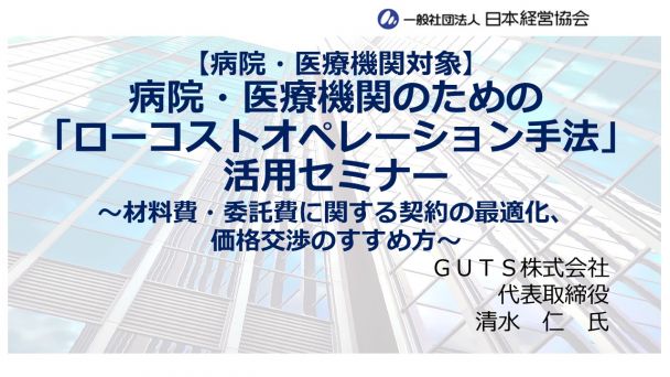病院・医療機関のための「ローコストオペレーション手法」活用セミナー