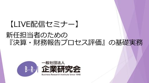 【開催にあたって】 金融商品取引法に基づく内部統制報告制度が導入されてから20年あまりが経過し、制度そのものは安定的に運用されています。 一方、各社においては評価部門担当者の異動が断続的に行われ、ハードルが高いと感じることが多い「決算・財務報告プロセス」を如何に引き継ぐかが課題となっています。 当セミナーでは、決算・財務報告プロセス評価に携わることになった方々を対象に、評価を実施する上で必要な知識やノウハウに加え、評価対象部門や監査法人とのコミュニケーションにも焦点を充てて、必要十分な解説を致します。