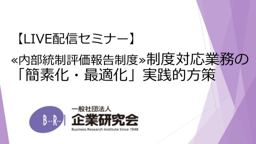 【開催にあたって】 内部統制報告制度の改訂や、財務諸表監査の要求水準の強化により、近年において内部統制の重要性は増してきており、その評価範囲は拡大傾向にあります。 これにより、内部統制の経営者評価・内部統制監査対応、財務諸表監査対応を担う内部監査部門はもとより、評価対象部門・子会社においても、これらへの対応のため、業務負荷の増大に直面しています。 内部統制報告制度への対応は、上場企業として適切に行われるべきものである一方、社内リソースも有限であることから、対応業務の簡素化・最適化への取り組みは実務対応者にとっては宿願と言えます。 そこでこの講座では、全社的な内部統制、業務プロセスに係る内部統制の各領域において、文書化や評価方法の観点から、その「簡素化・最適化」の実践的な方策について解説します。