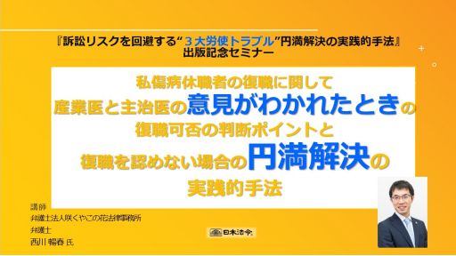 『訴訟リスクを回避する“3大労使トラブル”円満解決の実践的手法』出版記念セミナー(389)