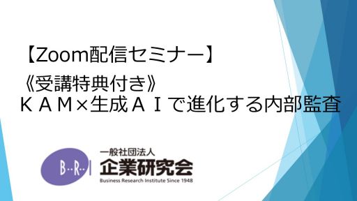 《受講特典付き》KAM×生成AIで進化する内部監査~ 内部監査をチェックからインテリジェンスへ ~