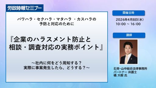 『企業のハラスメント防止と相談・調査対応の実務ポイント』WEB