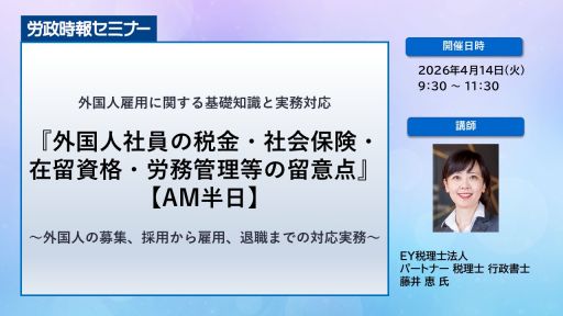 『外国人社員の税金・社会保険・在留資格・労務管理等の留意点』【AM半日】WEB