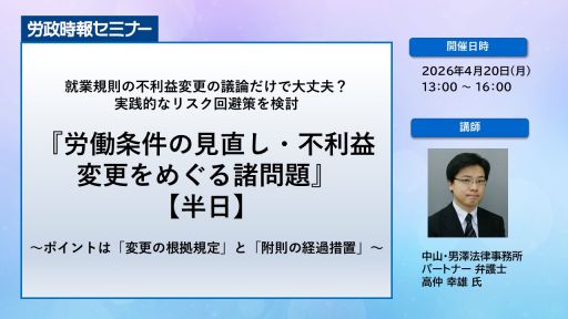 『労働条件の見直し・不利益変更をめぐる諸問題』【半日】WEB