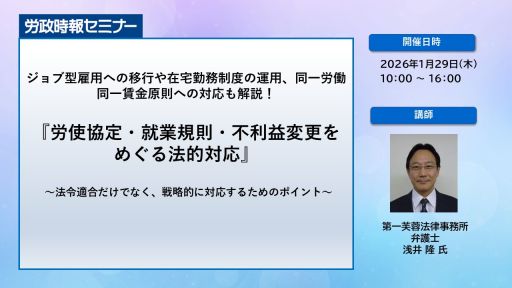 『労使協定・就業規則・不利益変更をめぐる法的対応』WEB