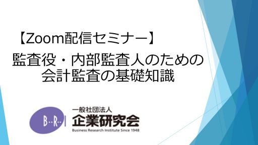 【開催にあたって】 監査役や内部監査人にとって、会計監査の理解は必須事項です。 実際に会計監査を実施しなければならないこともありますが、「経理経験もないのに、どのように監査を行ったらよいかまったくわからない。」という声がよく聞かれます。会計監査である以上、会計や内部統制の知識は当然必要ですが、複雑な会計基準や簿記の知識が今はなくても、実効性のある会計監査を行うことは可能です。 本セミナーでは、会計監査を行う上でどのような視点が必要か、また具体的に何を行えばよいのか、等の基礎について学んでいただきます。