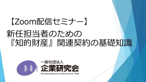 新任担当者のための『知的財産』関連契約の基礎知識 ~「秘密保持契約書」、「共同研究開発契約書」、「共同出願契約書」、「ライセンス契約書」の注意事項と重要項目についてポイント解説~