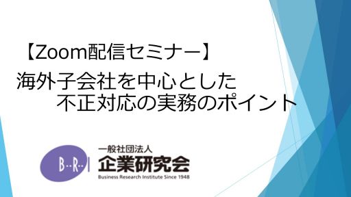 【開催にあたって】 海外子会社における会計不正、役職員による取引関連の不正などの不祥事の発生は、年々クローズアップされてきております。 ひとたび不祥事が発生しますと、社内外の委員会による調査、監査法人や取引所を始めとした関係各所への対応が同時並行で実施されていくこととなります。 最近発生している会計不正の事象や傾向から、発生時の対応ポイント、再発防止に向けた施策を押さえていただくことで、発生時の対応が円滑になります。 また、そもそも不正を発生させないためには、グループ全体において内部統制を浸透させていくことが必要になり、特に海外子会社の統制は多くの企業において喫緊の課題になってきております。 本セミナーでは、海外子会社を中心とした不祥事発生時の実務上の対応のポイントと、グループにおける内部統制を中心に解説いたします。