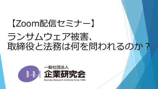 ランサムウェア被害、取締役と法務は何を問われるのか? ~サプライチェーン時代の“経営責任”と実務対応~