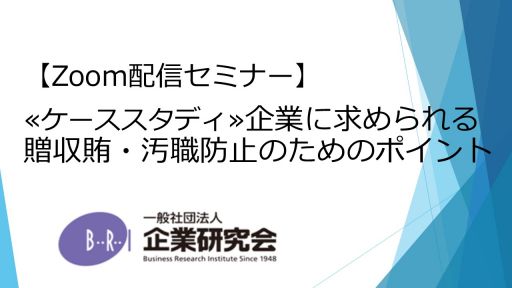 【開催にあたって】 企業として、国内外の行政機関とのコミュニケーションは欠かすことができないものとなっています。企業がこれら行政機関とコミュニケーションをとる場合、その相手となる個人は公務員であり、金品等の利益の提供は、刑法上の贈賄罪に関係することとなるほか、不正競争防止法、政治資金規正法、国家公務員倫理規程等の汚職に関わる多岐の法令が関係してまいります。 また、企業の役職員として、金品等の利益の提供を受けることもあります。その場合、公職選挙法や会社法の規制を受けますし、また、これらの法令の規制を受けるものではありませんが、企業として無限定に利益の収受を受けることは企業としての合理的な経済活動を阻害する可能性もあります。 本セミナーでは、企業から公務員への利益の提供と、関係法令の関りをわかりやすく解説しつつ、企業として求められる贈収賄・汚職防止のためのポイントや企業が捜査を受けた際等の非常時の対応についても解説します。