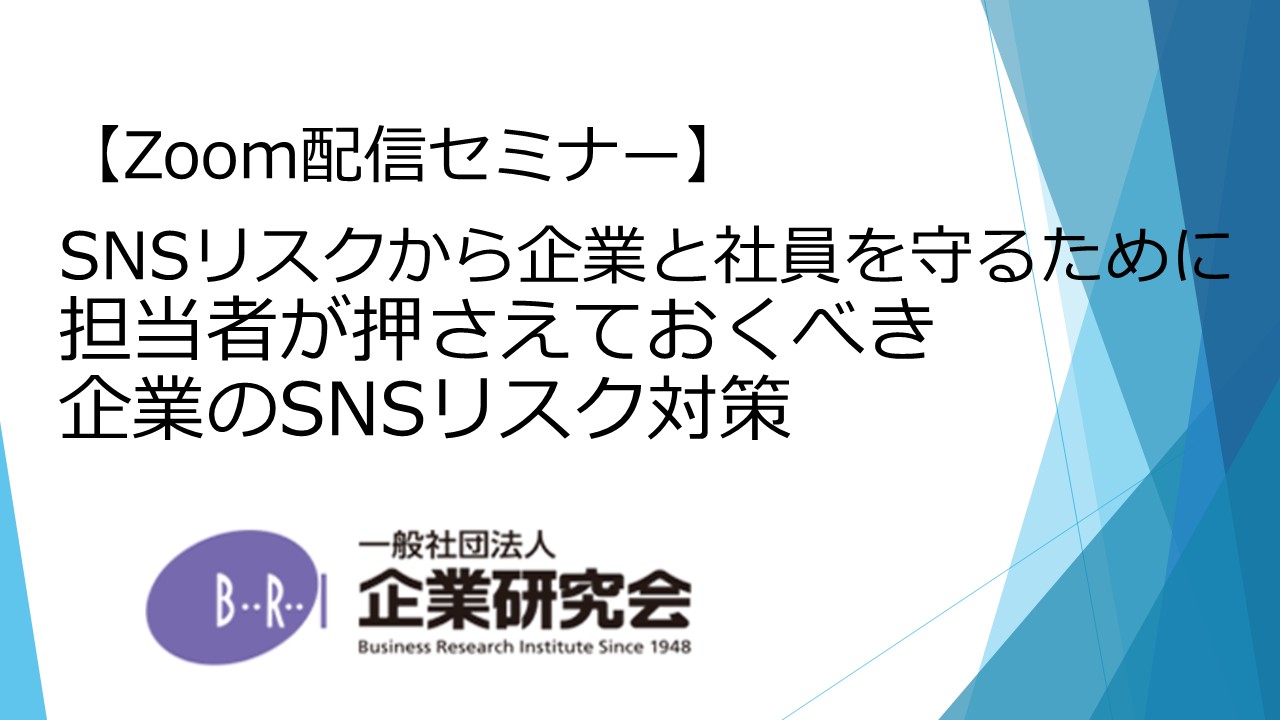 【開催にあたって】 SNS利用者が世代を問わず増加するなかで、マーケティングやリクルーティング、社内におけるコミュニケーションなどのためのビジネスツールとしてSNSを利用する企業が増えています。 その一方で、社員や役員による不適切投稿やバイトテロ、公式アカウントでの誤爆や不適切発言などにより、企業の信用や評判が毀損されるケースも発生しています。手軽に情報発信できるSNSですが、使い方を誤れば企業や関係者に多大な損害をもたらします。 そこで、本セミナーでは、過去に発生したSNSを巡るトラブル事例をご紹介しながら、SNS利用に伴うリスクやネットトラブルが企業に及ぼす影響、トラブル防止のための社内体制の整備、トラブル発生時の対応について解説します。