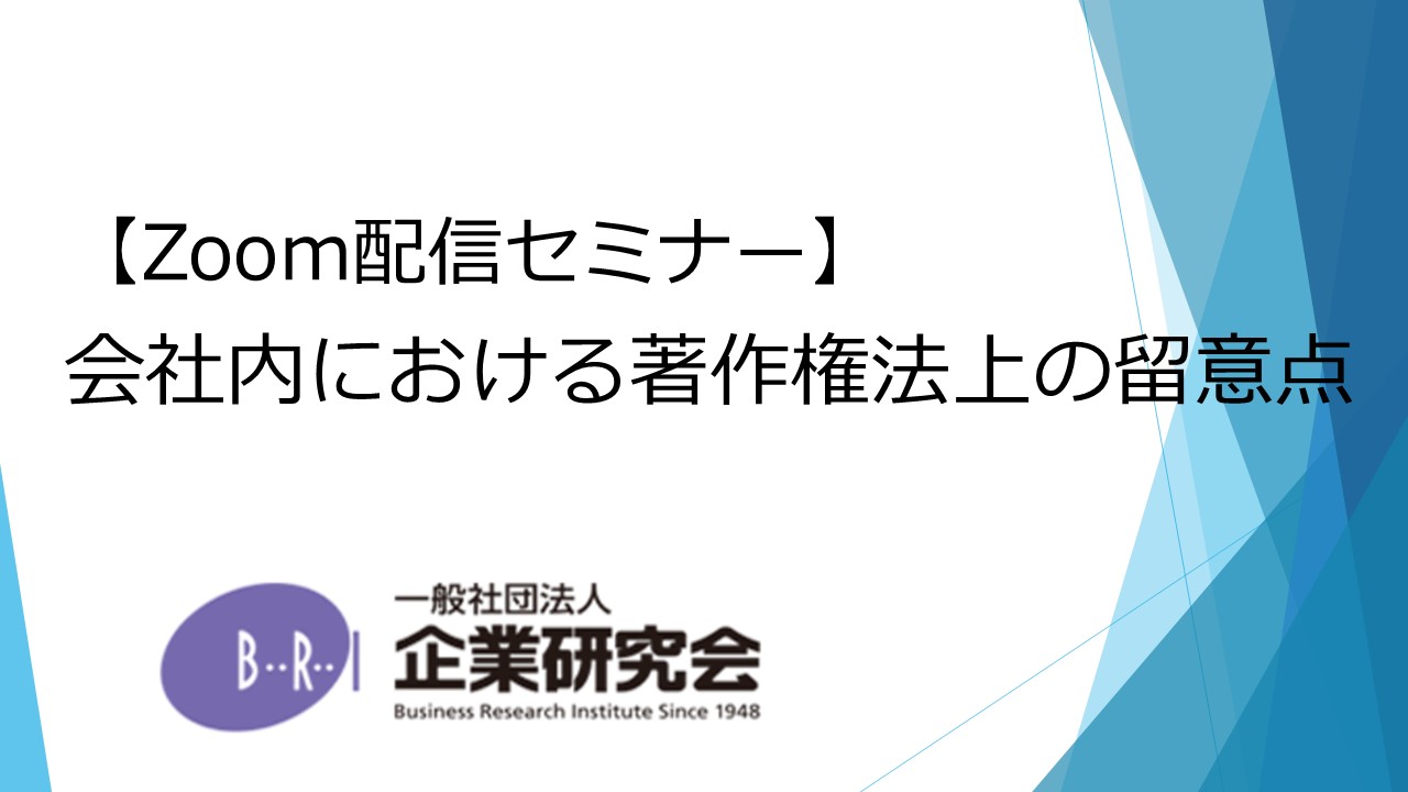 【開催にあたって】 著作権は、会議・プレゼンに使用する資料、顧客に配布する広告媒体、ウェブサイト・SNSでの広告、ソフトウェアの利用など、様々な場面で問題となり得ます。 著作権侵害が発生した場合、侵害行為の差止請求や損害賠償請求を受ける恐れがあります。また、著作権侵害を行ったことがネットニュースなどで報道される可能性があるなど、コンプライアンスやレピュテーションリスクの観点からも、著作権侵害を防止する体制を整えておくことが望ましいと言えます。 本セミナーでは、著作権について基礎から学びたい方、社内で著作権侵害をしていないか確認したい方、著作権侵害によって生じうる具体的なリスクについて知りたい方、著作権法違反を発見した場合の対応を知りたい方などを対象に、弁護士が具体的な事案を交えながら著作権についてこれだけは知っておくべきという事項について解説します。