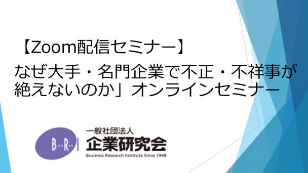《企業・部下を守るため新任管理職も押さえておきたい》「コンプライアンス=法令遵守という罠─なぜ大手・名門企業で不正・不祥事が絶えないのか」オンラインセミナー
