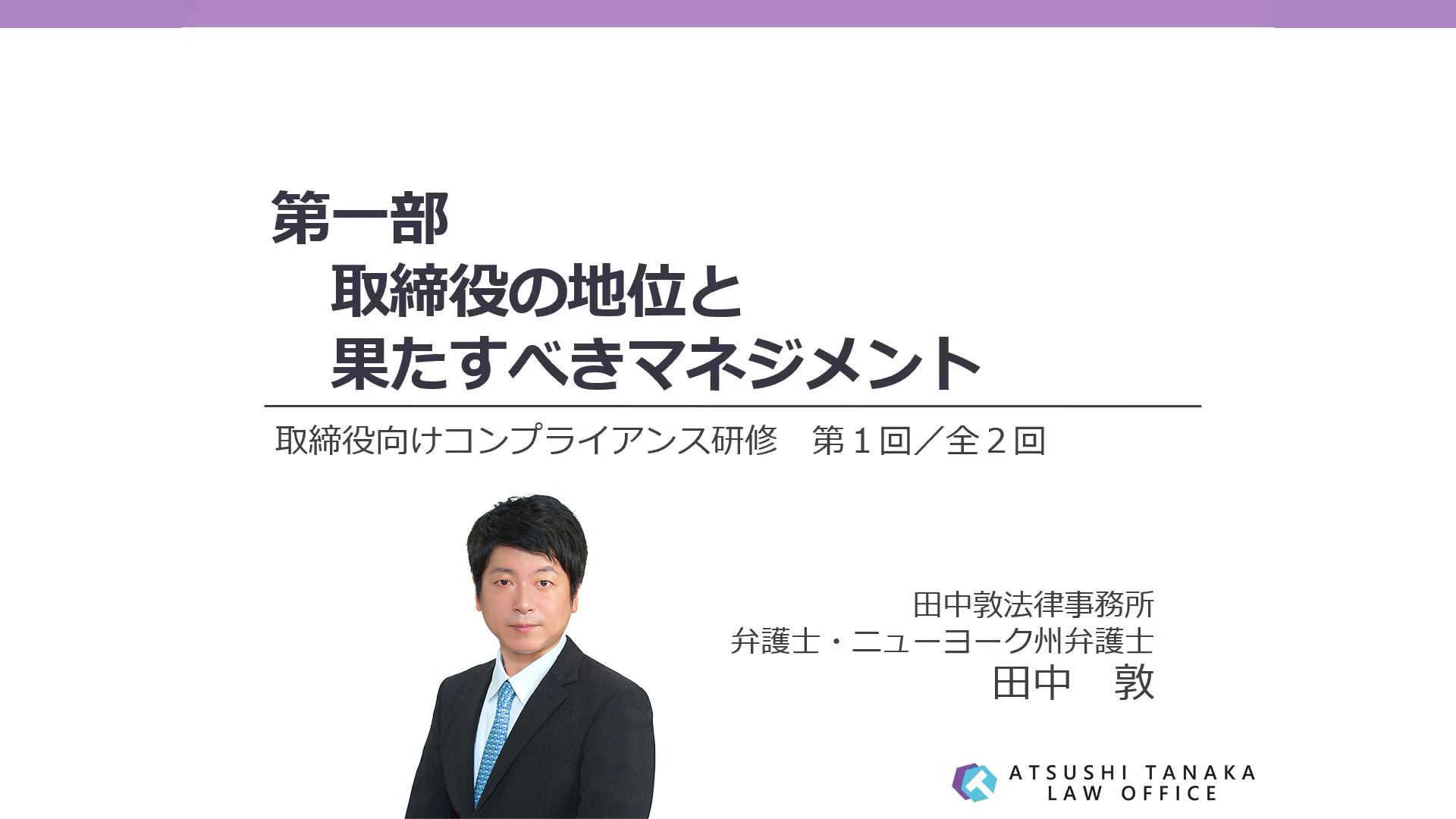 取締役向けコンプライアンス研修 ~取締役の地位と果たすべきマネジメント~