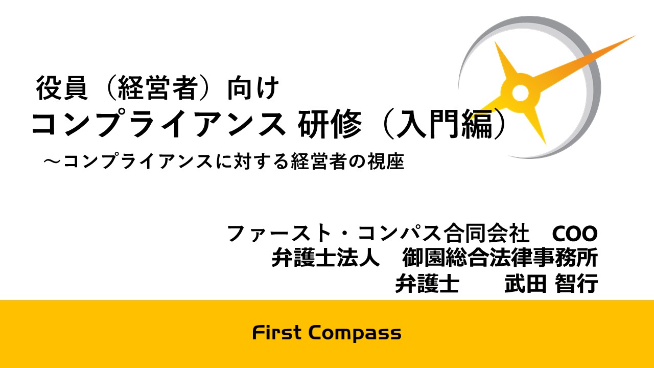 役員(経営者)向けコンプライアンス研修(入門編) ~コンプライアンスに対する経営者の視座
