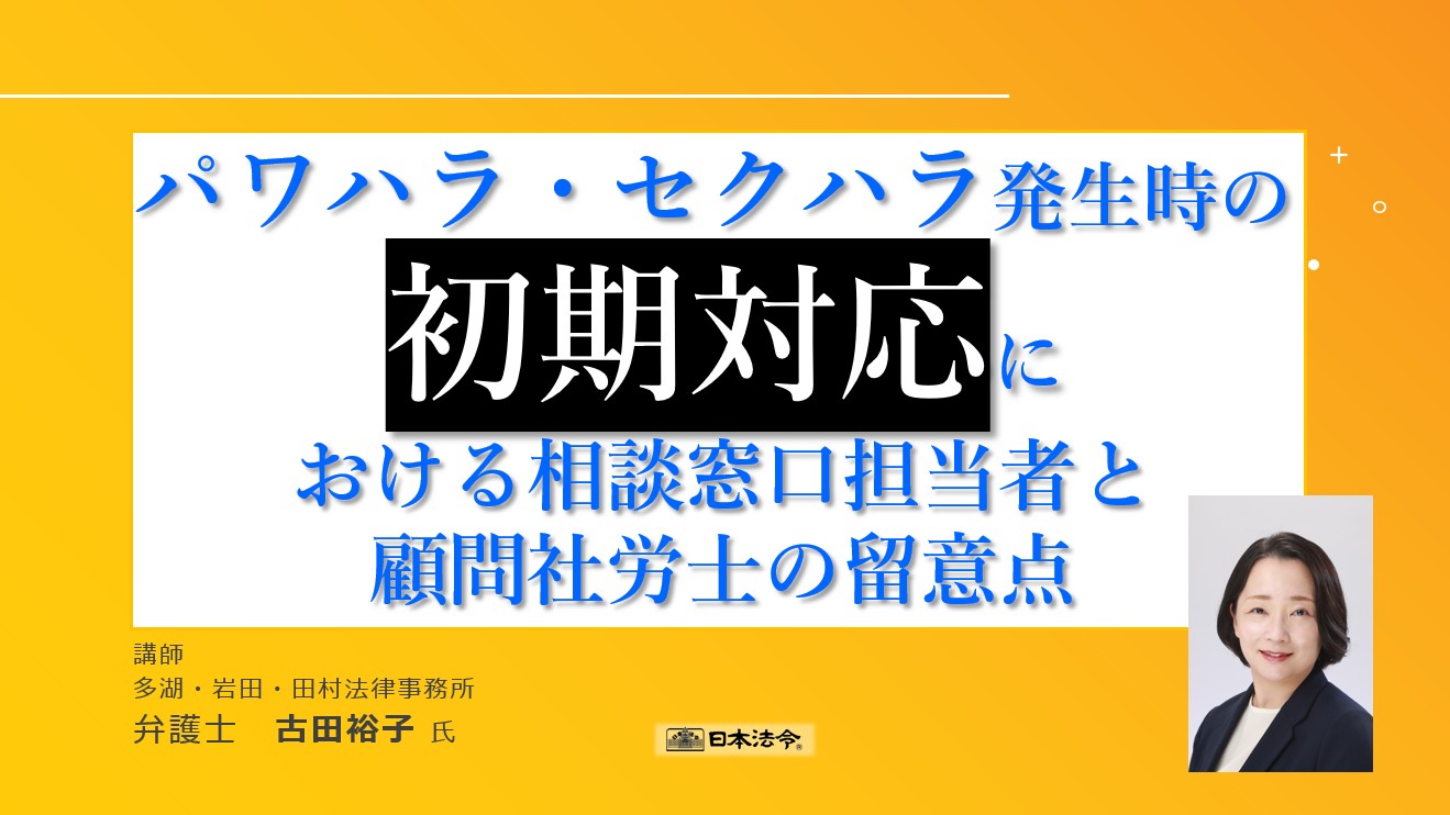 ハラスメントのうちパワハラ・セクハラに絞り、問題が生じた場合の相談窓口における対応の留意点や、どのように他部署との連携をとり、調査、処分等の対応をしていくべきか、そして社労士の立場における留意点等について、わかりやすく解説します。
