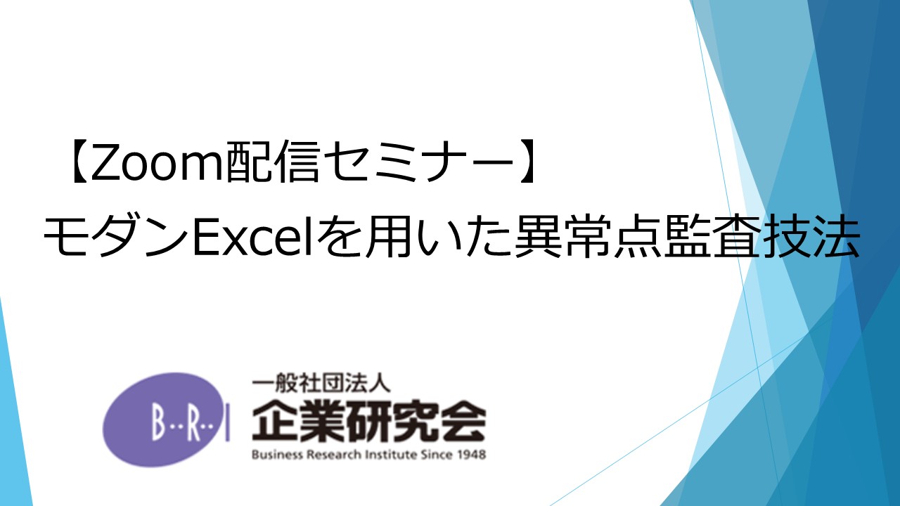 【開催にあたって】 ◆◆セミナーをご受講の方に、講師書籍「モダンExcel入門」を進呈いたします。◆◆ 「効率的で効果的な監査」を行うことができる有効なツールとして、CAAT(Computer Assisted Audit Techniques:コンピュータ利用監査技法)が注目されています。その背景には、企業活動で扱うデータの増加やシステムの複雑化により、通常の内部監査におけるサンプルチェックだけでは不正会計の兆候を発見するのは不十分だと気付いたからといえます。そこで、CAATを用いて効果的・効率的に不正会計の兆候を把握することが期待されます。 本セミナーではどんな組織でも比較的容易にCAATを実施できるように、モダンExcel(※)を用いたCAATの基礎知識から活用事例までを解説いたします。CAATでどのようなことが可能になるのか興味がある方々、モダンExcelを活用し効果的・効率的なモニタリング体制を構築したいと検討中の方々におすすめです。 ※モダンExcel 2大ツール(Power Query とPower Pivot for Excel)搭載以前の従来エクセルと区別する意味でつけられた愛称です。「ノーコード」「ローコード」で、より簡単に、より迅速に、より複雑なデータ分析等が、お手元のExcelで出来るようになります。経営管理や監査など様々な業務で『モダンExcel』は利活用いただけます。