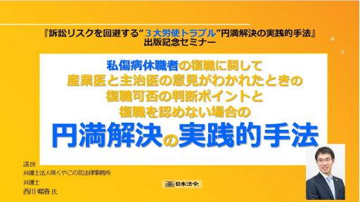 『訴訟リスクを回避する“3大労使トラブル”円満解決の実践的手法』出版記念セミナー(389)