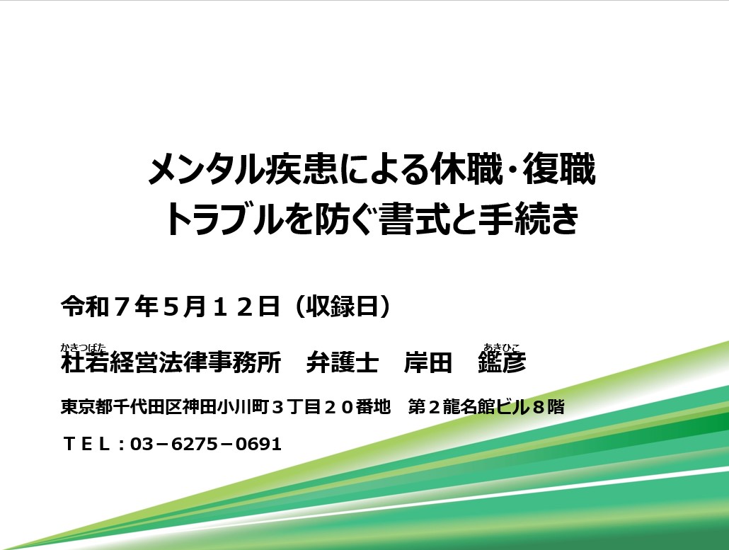 メンタル疾患のある従業員の休職・復職等にまつわる対応については、基本的な事項や手続きについては就業規則に定めがあることも多いと思われます。しかし、実際の対応においては、メンタル疾患という事情から、なかなか従業員本人と直接話がしにくい、会社が説明した内容をきちんと理解しているか不安、発言のニュアンスで誤解や不信が生ずる可能性があるなど、迷いや悩みが生じます。また事後的に紛争になった際には、当時の対応が適切であったかどうかの証明が求められます。