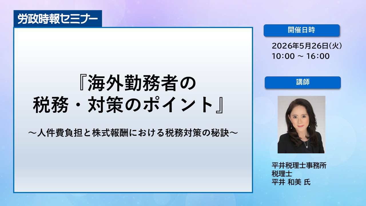 海外勤務者に関する税務は、日本及び海外の双方におよぶことから誤った処理も多く、日本及び世界の厳しい税務調査の対象となっています。特に日本企業に対する現地税務当局の裁量によるPE認定課税は頻繁になされており、想定外に多額な国際的二重課税、追徴金、罰金が生じているのが実情です。これらは予めの税務対策によりリスク低減できるものです。役職員は本来所属する会社の所在国以外で長期勤務するなど、現代のグローバルでの勤務状況は多様化しており、これらに応じた報酬のあり方や税務対策をとることが必要です。本講座では、問題となりやすい人件費負担と株式報酬の税務のポイントを分かり易く解説し実務対策をアドバイスしますので、是非ご参加下さい。