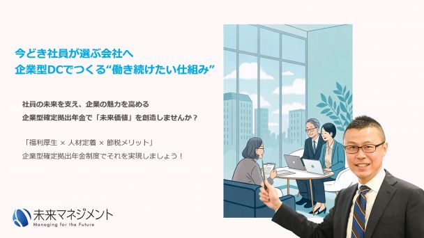 子高齢化や人材の流動化が進む現代において、多くの企業が優秀な人材の確保と社員の定着率向上という課題に直面しています 。 同時に、従業員は老後資金に対して漠然とした不安を抱えています 。 また、2022年度から高校での金融教育が必修化されたことで、今後は企業にも手厚い資産形成サポートが期待されます。本セミナーでは、これらの課題に対する有効な解決策として「企業型確定拠出年金(企業型DC)」制度に焦点を当てます。 企業型DCは、従業員の将来の資産形成を支援しながら、企業側にも税制上の優遇や社会保険料の抑制といったメリットをもたらす制度です 。 本セミナーを通じて、企業型DCが「社員に選ばれる会社」になるための重要な人事戦略となり得ることを、具体的な仕組みや導入メリットと共に解説します 。