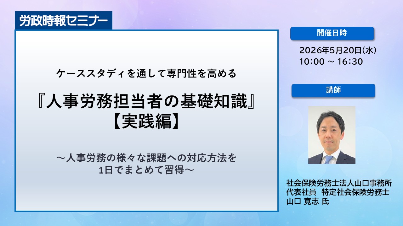 人事労務担当者が押さえておきたい実務対応について、ケーススタディを通して学ぶ講座です。