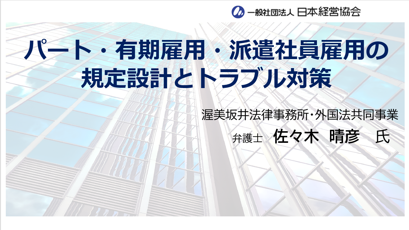 本セミナーでは、非正規社員に関する実務対応をテーマに、労働弁護士が最新の法令・裁判例・行政動向を踏まえ、場面別の対応方法や必要書式・規程例・チェックリストを提示し解説します。