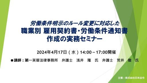 労働条件明示のルール変更に対応した 職業別 雇用契約書・労働条件通知書作成の実務セミナー