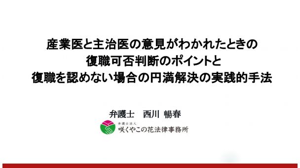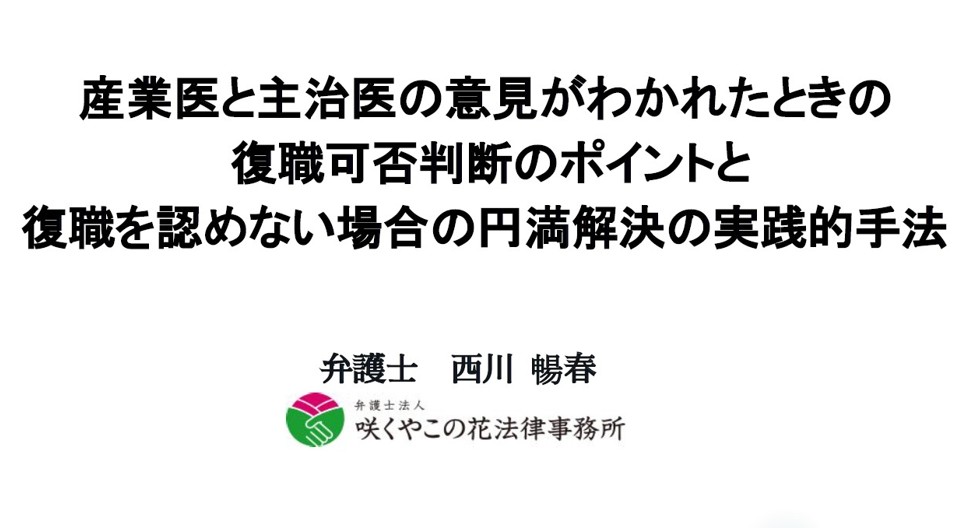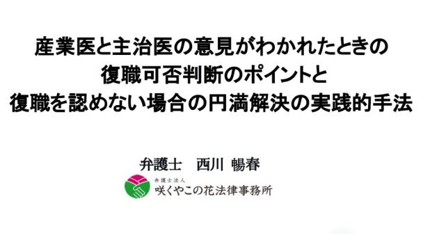 本セミナーでは、メンタルヘルス不調者への対応で最もトラブルになりやすい「私傷病休職からの復職可否」に関して、産業医と主治医の意見がわかれたときの復職可否判断に焦点をあてて解説します。