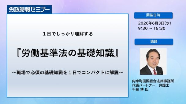 本講座では、初めて法律に触れる方、人事担当者として初任の方、あるいは初任管理職の方々を対象に、労働基準法を基本から解説します。