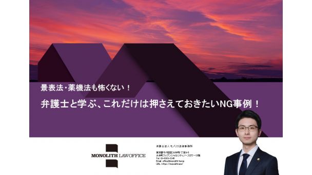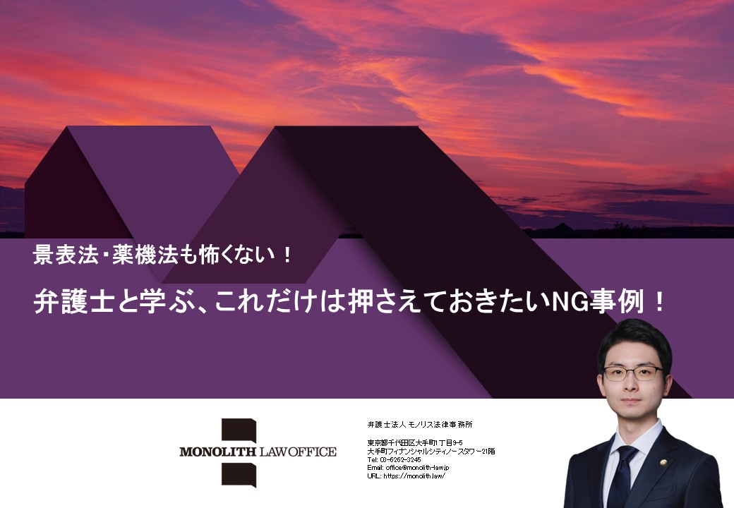 本セミナーでは、近年の措置命令事例を交えながら、実務で問題となりやすい景表法・薬機法における広告表現のNG事例を具体的にご紹介します。