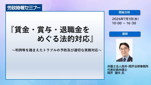『賃金・賞与・退職金をめぐる法的対応』WEB