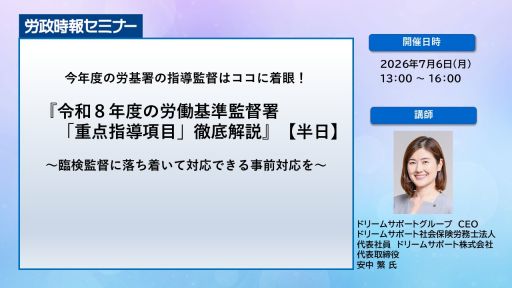 『令和8年度の労働基準監督署「重点指導項目」徹底解説』【半日】WEB