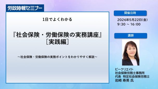 本講座では、入社・退職の手続き、病気やけがの際の手続き、年間の定例業務の手続きなどの基本的な対応について、すぐに活用できるスキルをマスターしてもらえるように、ケーススタディを用いながら、わかりやすく解説します。