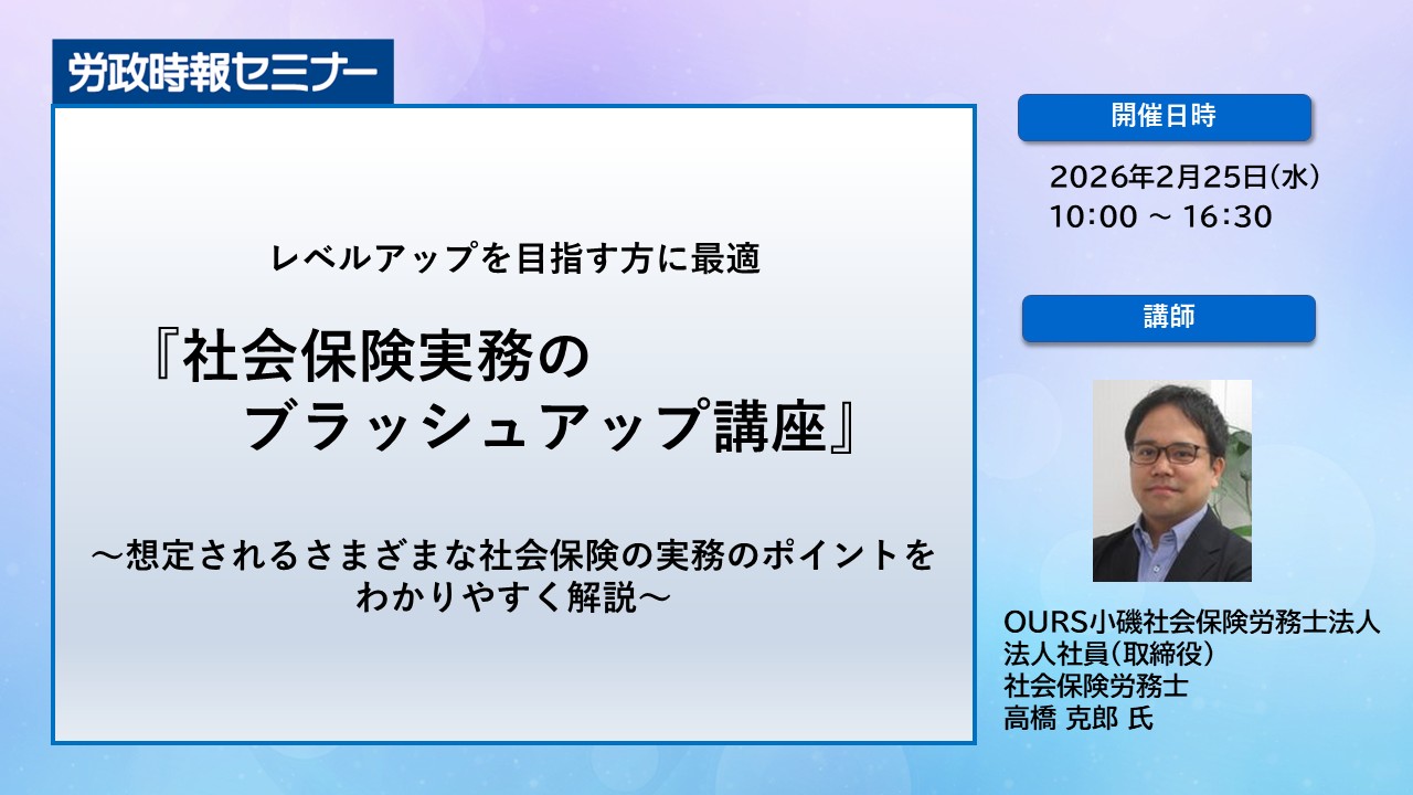 なお、標準報酬月額、基本手当などの基本的な知識に関しては冒頭に大まかに復習しますが、随時ケーススタディーの解説に織り込みながら進めていきます。また、基礎講座編に当たる「1日でマスターする 社会保険の基礎知識」を受講されていない方でも参加いただくことが可能です。多くの担当者の方の参加をお待ちしています。