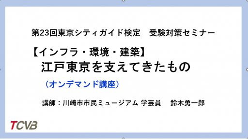 第23回東京シティガイド検定受験対策セミナー【科目:インフラ・環境・建築】(オンデマンド講座)