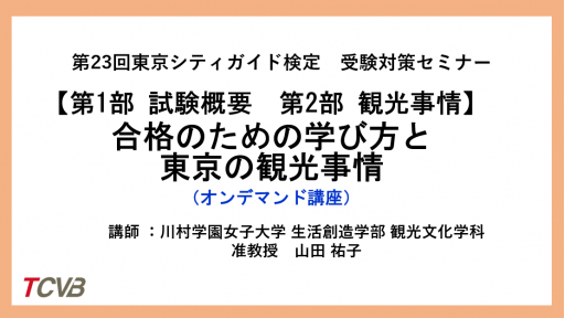 第23回東京シティガイド検定受験対策セミナー第1部 試験概要 第2部 観光事情 合格のための学び方と東京の観光事情(オンデマンド講座)
