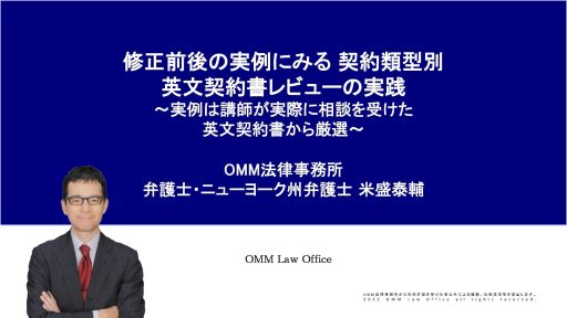 修正前後の実例にみる 契約類型別 英文契約書レビューの実践 ~実例は講師が実際に相談を受けた英文契約書から厳選~