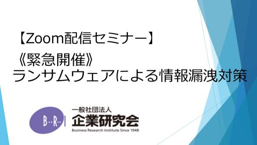 《緊急開催》ランサムウェアによる情報漏洩対策 ~いま企業に求められる実務対応とは?~