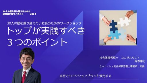 30人の壁を乗り越えたい社長のためのワークショップ トップが実践すべき3つのポイント ~自社でのアクションプランを策定する~ 30人の壁を乗り越えるために経営者がなすべきこと vol.3