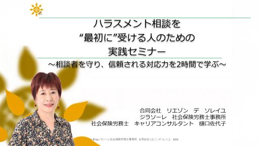 ハラスメント相談を”最初に”受ける人のための実践セミナー ~相談者を守り、信頼される対応力を2時間で学ぶ~